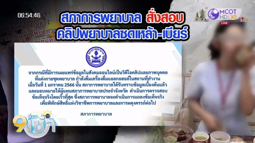 อสมท 3 ม.ค. – สั่งสอบพยาบาลจัดปาร์ตี้ในโรงพยาบาล ยกเหล้ากระดกทั้งที่ใส่เครื่องแบบ ซัดไม่เหมาะสม ด้าน สสจ.อยุธยา เผยเกิดขึ้นที่สถานพยาบาลเอกชนแห่งหนึ่ง