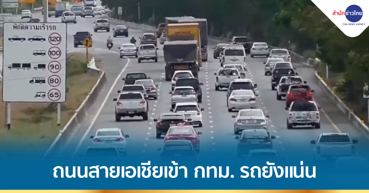 อ่างทอง 3 ม.ค. – การจราจรบนถนนสายเอเชีย ช่วง จ.อ่างทอง ถึงเขตรอยต่อ อ.มหาราช จ.พระนครศรีอยุธยา ปริมาณรถเดินทางเข้ากรุงเทพฯ ยังหนาแน่น ใช้ความเร็วได้ 60-80 กม./ชม. ชะลอตัวตามจุดที่เป็นคอขวด