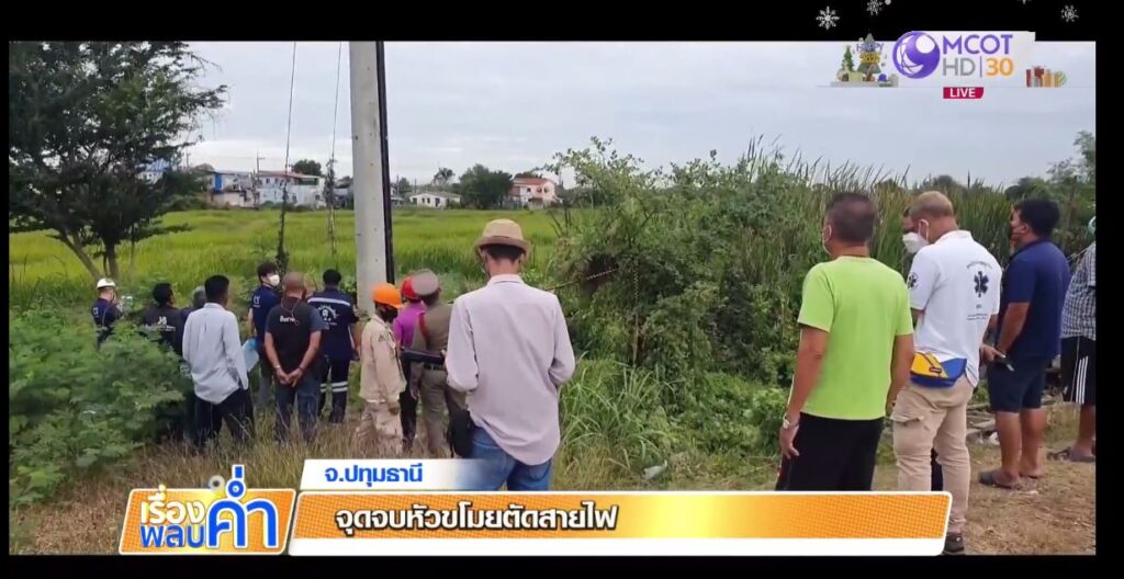 ปทุมธานี 4 ม.ค.- จุดจบหัวขโมยตัดสายไฟถนนราชพฤกษ์ตัดใหม่ 346 โดนไฟฟ้าแรงสูงช็อตเสียชีวิต ชาวบ้านถึงบางอ้อ คนขโมยตัดสายไฟ ทำให้ไฟฟ้าบนถนนเส้นนี้ติดๆ ดับๆ