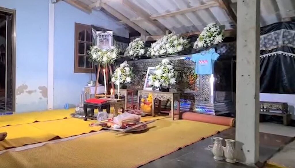 ส่วนที่บ้านนางอนงค์นาฎ แม่ของผู้ต้องหา และเป็นย่าของน้องเปียโน เมื่อคืนที่ผ่านมา จัดงานสวดพระอภิธรรมให้น้องเปียโน ญาติได้เผากระดาษโน้ตที่นายรณชัย เขียนรายชื่อเตรียมฆ่ายกครัวทั้งฝ่ายอดีตเมีย และครอบครัวตนเองมาเผาทิ้ง