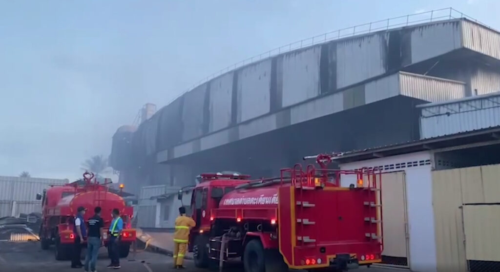 ชลบุรี 6 ม.ค.- นายอำเภอบางละมุง ลงพื้นที่ตรวจสอบเหตุเพลิงไหม้โกดังพ่นสี ล่าสุดคุมเพลิงได้ในวงจำกัดแล้ว คาดเสียหายกว่า 100 ล้านบาท