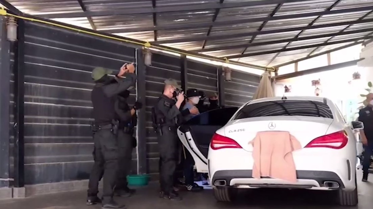 ด้านตำรวจควบคุมตัวไปตรวจค้นหาหลักฐานเพิ่มเติมที่บ้านในเขต ต.ห้วยใหญ่ อ.บางละมุง จ.ชลบุรี โดยไม่อนุญาตสื่อเข้าไป โดยตรวจค้นภายในบ้านและรถ ประมาณ 30 นาที ก่อนนำตัวมาสอบปากคำเพิ่มเติมที่ สภ.ห้วยใหญ่. – สำนักข่าวไทย