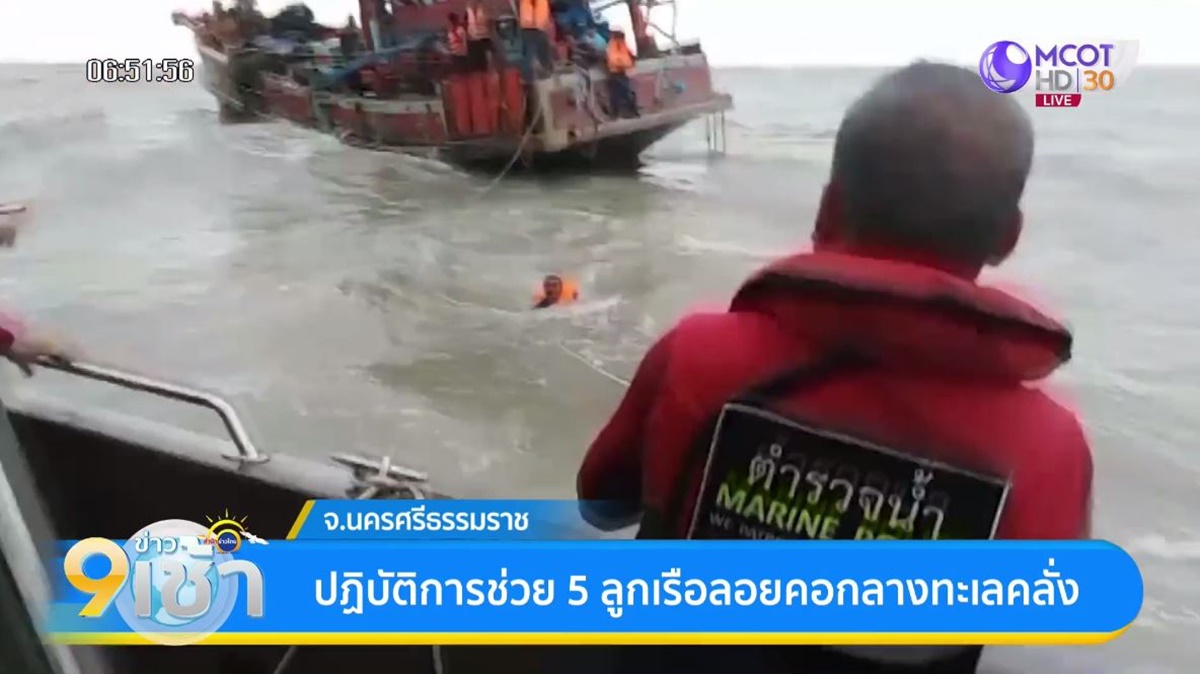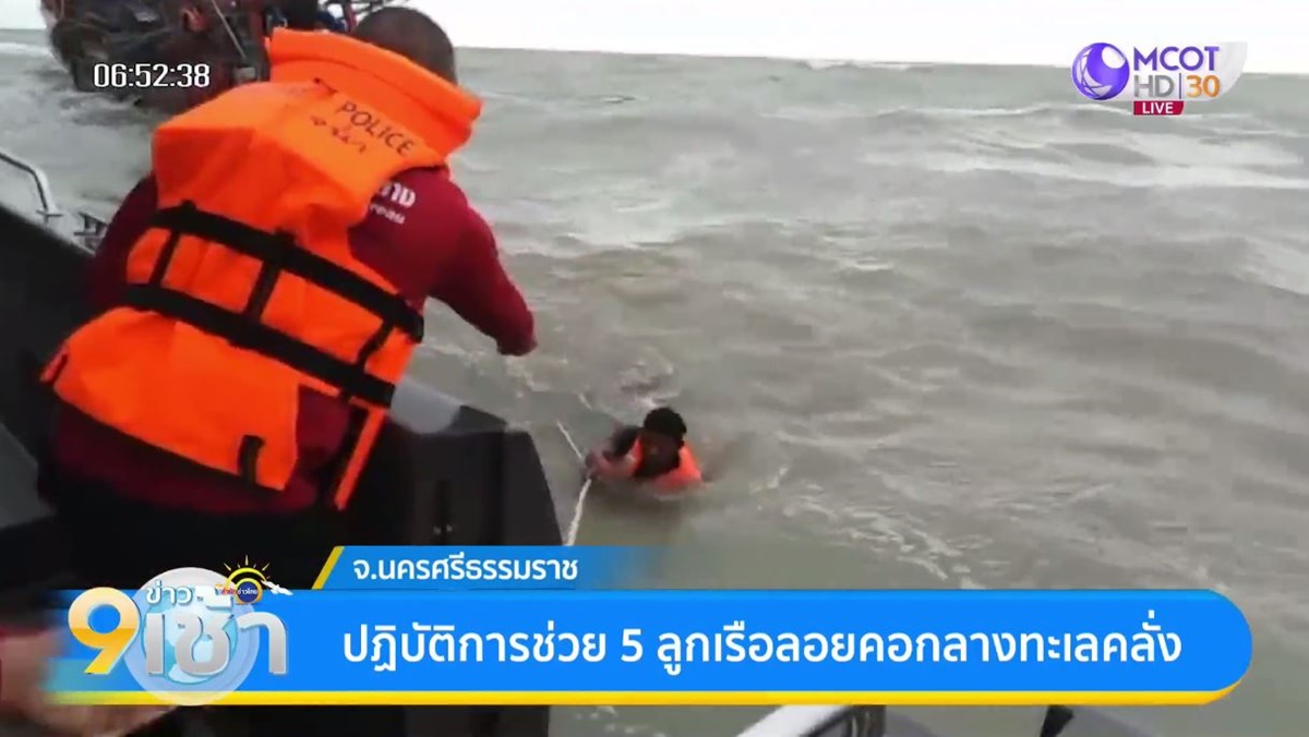 นครศรีธรรมราช 9 ม.ค. – ระทึก! ตำรวจน้ำปากพนังส่งชุดปฏิบัติการโลมา ฝ่าคลื่นสูงช่วยชีวิต 5 ลูกเรือประมงอับปาง หลังลอยคอกลางทะเลนานถึง 8 ชม.