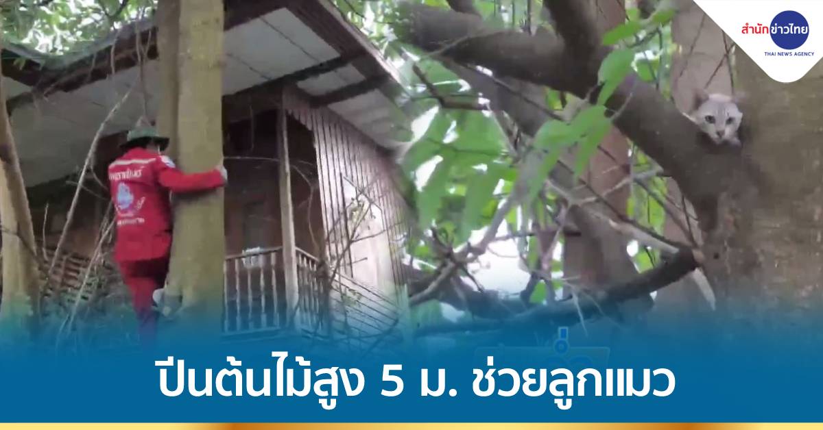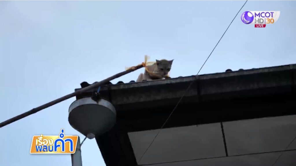 สมุทรสงคราม 9 ม.ค.- กู้ภัยใจเด็ด ปีนต้นไม้สูง 5 เมตร ช่วยลูกแมวติดบนหลังคา พยายามอยู่เกือบ 20 นาที เจ้าแมวก็ไม่ยอมให้จับ จนต้องเปลี่ยนแผน ใช้เชือกผูกเป็นห่วงติดกับปลายไม้ไผ่ คล้องตัวเจ้าเหมียว ช่วยลงมาได้ปลอดภัย