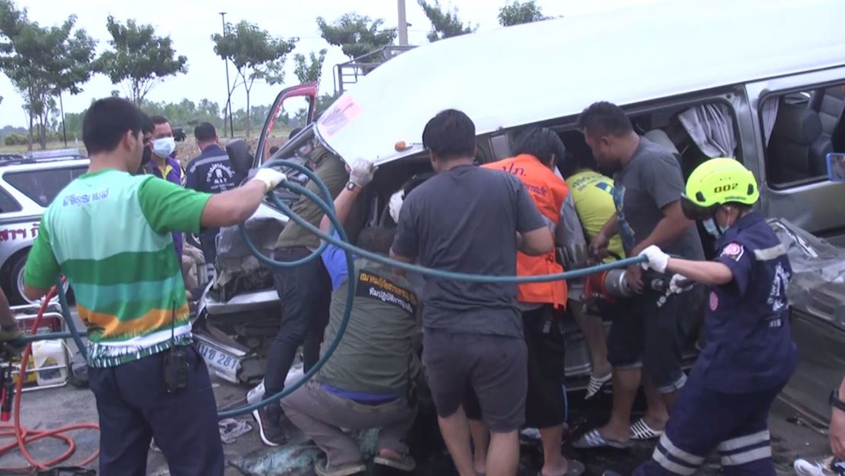 พิจิตร 10 ม.ค. – รถเก๋งแซงไม่พ้น ทำรถรับส่งนักเรียนเสียหลักพุ่งชนประสานงากับรถตู้ที่ขับสวนมา เบื้องต้นมีนักเรียนและคนขับบาดเจ็บ 19 ราย เสียชีวิต 2 ราย ด้านคนขับรถเก๋งยกมือไหว้ขอโทษ ยอมรับผิดทุกอย่าง