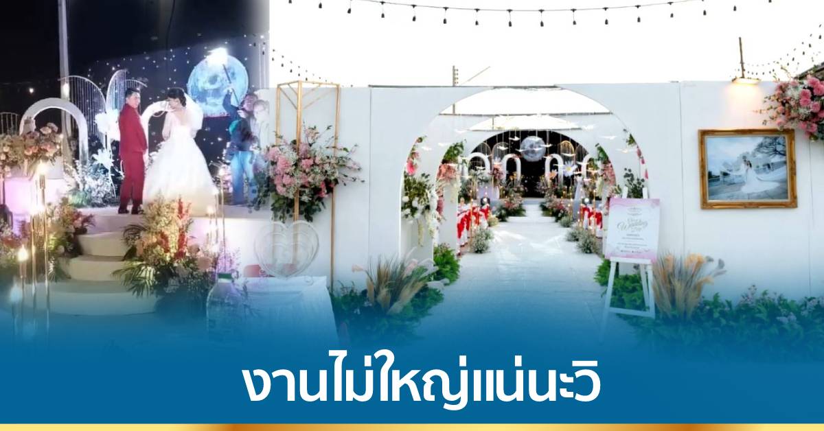 อุดรธานี 10 ม.ค.- บ่าว-สาวสุดปลื้ม หลังเคยถูกเทงานแต่ง ออร์แกไนซ์เจ้าใหม่จัดให้อย่างอลังการ เนรมิตงานแต่งเล็กๆ หน้าบ้าน กลายเป็นวิวาห์ในฝัน จนแขกพูดเป็นเสียงเดียวกันว่า “งานไม่ใหญ่แน่นะวิ”