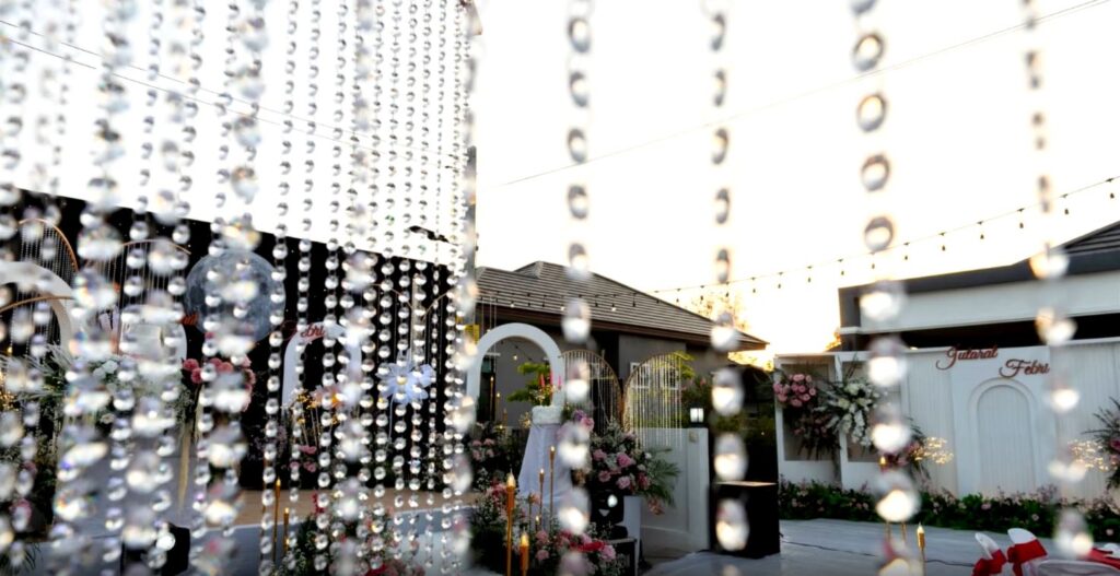 น้องนุ้ย เล่าต่อไปว่า เมื่อ 2 ปีก่อน วางแผนจัดงานแต่งที่ประเทศอินโดนีเซีย แต่มาเจอโควิดระบาด จึงพับโครงการไป และมาซื้อเรือนหอแทน พอวางแผนจัดงานแต่ง จึงตั้งใจจัดที่เมืองไทย ตกลงจัดงานวันที่ 18 ธันวาคมที่ผ่านมา เลือกเชิญแขกเป็นญาติพี่น้องและเพื่อนสนิทมาร่วมงาน โดยตนจะบอกแขกว่า “จัดงานเล็กๆ” ซึ่งแม่จัดเตรียมอาหารเจไว้เพียง 14 โต๊ะเท่านั้น แต่ก็มาโดนออร์แกไนซ์เจ้าแรกเทงานแต่งไป ทำให้ต้องติดต่อหาออร์แกไนซ์เจ้าใหม่ ก็มาได้เจ้านี้ชื่อว่า “ห้องชุดคุณชาย” ที่เนรมิตงานออกมาให้ได้อย่างอลังการ ถนนหน้าบ้านเป็นอุโมงค์ทางเข้า เวทีตั้งอยู่หน้าบ้าน สวยงามมาก จนเพื่อนที่มางานตื่นตาตื่นใจ ถามว่า “งานไม่ใหญ่แน่นะวิ”