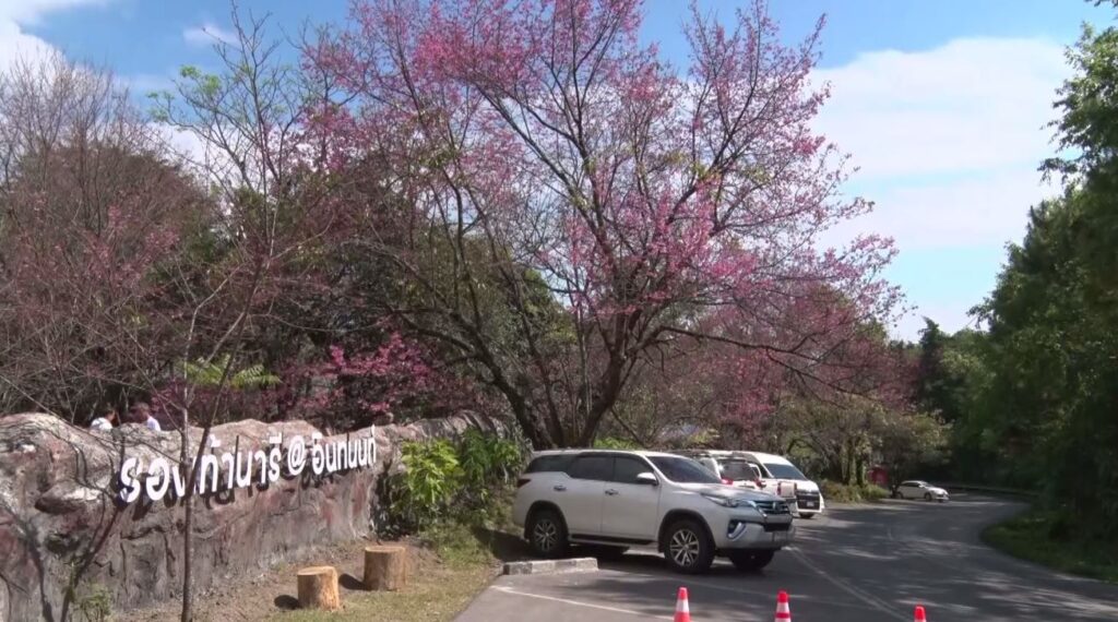 นักท่องเที่ยวต่างบันทึกภาพเป็นที่ระลึก กับดอกซากุระเมืองไทย หรือ ดอกนางพญาเสือโคร่ง ที่กำลังบานสะพรั่งเต็มพื้นที่ศูนย์อนุรักษ์พันธุ์กล้วยไม้รองเท้านารี อุทยานแห่งชาติดอยอินทนนท์ อ.จอมทอง จ.เชียงใหม่ ทำให้พื้นที่ดอยอินทนนท์ กลายเป็นสีชมพูทั่วทั้งบริเวณที่ตัดกับท้องฟ้าสีคราม และภูเขาสีเขียวอย่างสวยงาม ท่ามกลางอากาศกำลังหนาวเย็นช่วงนี้ เช้านี้อุณหภูมิต่ำสุดที่ยอดดอยอินทนนท์วัดได้ 6 องศาเซลเซียส