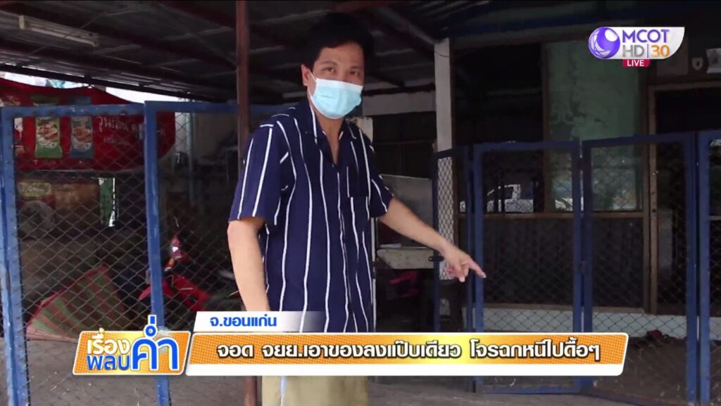 ผู้สื่อข่าวไปยังที่เกิดเหตุ บ้านหลังหนึ่งที่บ้านสีฐาน หมู่ 7 ต.บ้านเป็ด อ.เมือง จ.ขอนแก่น พบกับนายรัชมงคล พุทธเทศน์ อายุ 34 ปี เจ้าของรถ เล่าว่า ตนขี่รถจักรยานยนต์คันที่หายไป ยี่ห้อฮอนด้าเวฟ 110 ไอ สีน้ำเงินเทาทะเบียน 2 กง 9373 ขอนแก่น ไปซื้อของที่ร้านสะดวกซื้อและกับข้าวมาให้ภรรยาที่กำลังตั้งท้องใกล้คลอดและลูกวัย 2 ขวบ โดยในระหว่างที่รอกับข้าวเสร็จ ตนเองเอาของที่ซื้อที่ร้านสะดวกซื้อมาส่งให้ภรรยาที่บ้านก่อน แล้วจะรีบกลับไปเอากับข้าวที่สั่งไว้ ด้วยความเร่งรีบ และคิดว่าจะใช้เวลาไม่นาน จึงไม่ได้ถอดกุญแจรถจักรยานยนต์ออกไปด้วย กระทั่งผ่านไปประมาณ 1 นาที ตนเองจึงกลับออกมาจากในบ้าน ตั้งใจว่าจะขี่รถจักรยานยนต์ไปเอากับข้าวที่สั่งไว้ แต่ก็ไม่พบรถจักรยานยนต์ ตอนแรกก็คิดว่า พี่ชายของตนเองมาขับรถไปใช้งาน ตนเองจึงเดินไปเอากับข้าวที่สั่งไว้ที่ร้าน จนกระทั่งเวลาเกือบเที่ยง แม่ของตนเองกลับมาบ้านแล้วบอกว่าจะใช้รถ ให้ตนเองโทรหาพี่ชายให้หน่อย เมื่อตนเองโทรไปหาพี่ชาย พี่ชายกลับบอกว่า ไม่ได้เอารถไปใช้ ทำให้ทุกคนทราบว่า รถจักรยานยนต์ต้องถูกขโมยไปแน่นอน จึงขอดูภาพกล้องวงจรปิดจากคลินิกรักษาฟันที่อยู่ใกล้ๆ ก็พบว่ามีคนร้ายมาขโมยไป