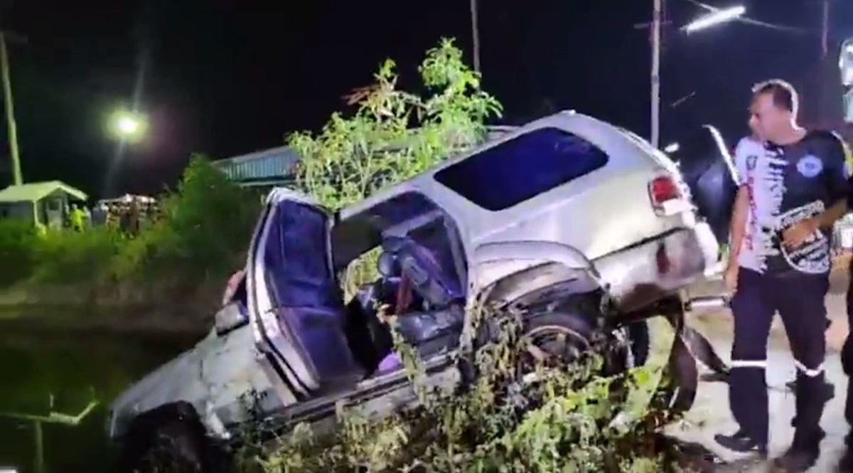 เพชรบุรี 13 ม.ค. – เกิดเหตุรถยนต์คันเร่งค้าง ขณะถอยหลังออกจากบ้าน พุ่งลงสระประปาการเกษตร สามีใช้เท้าถีบกระจกช่วยภรรยาออกจากรถได้ ส่วนตัวเองหมดแรงจมน้ำเสียชีวิต