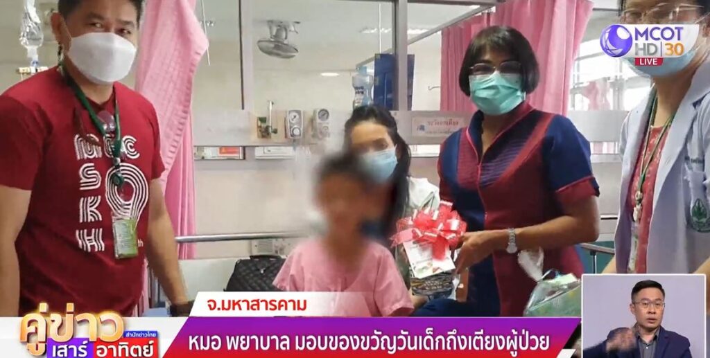 ดังนั้น โรงพยาบาลมหาสารคามจึงนำของขวัญที่ได้รับการบริจาค อาทิ ตุ๊กตา รถของเล่น ลูกบอล กระปุกออมสิน สมุด ดินสอ และขนม เป็นจำนวนมาก เพื่อสร้างความสุขและรอยยิ้มแก่ผู้ป่วยเด็ก ในหอผู้ป่วยเด็กเล็กและเด็กโต รวมถึงเด็กที่มาเยี่ยมผู้ปกครองในโรงพยาบาล