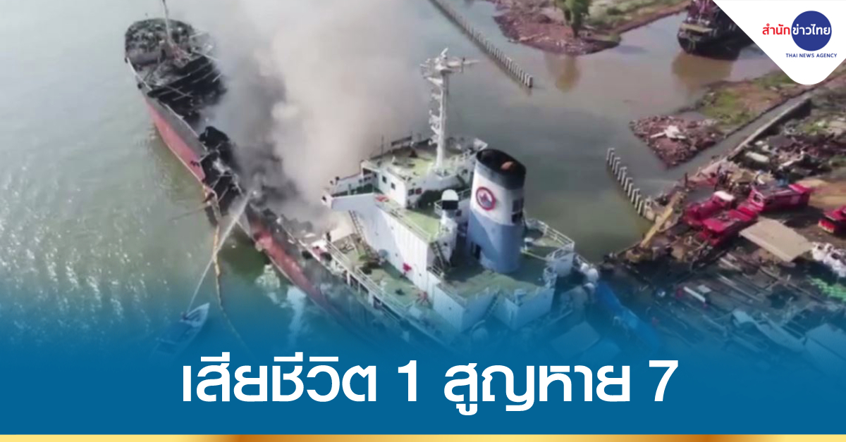 สมุทรสงคราม 17 ม.ค. – พบผู้เสียชีวิตแล้ว 1 ราย บาดเจ็บ 4 ราย และสูญหายอีก 7 ราย เหตุเรือบรรทุกน้ำมันขนาด 3 ล้านลิตร ระเบิด บริเวณท่าเรือรวมมิตรด็อคยาร์ด อ.เมืองสมุทรสงคราม ขณะที่วงจรปิดจับภาพนาทีเรือระเบิดหลายครั้ง ก่อนมีไฟไหม้รุนแรงตามมา เจ้าหน้าที่ต้องเร่งระดมทั้งรถดับเพลิง-เรือ เข้าคุมเพลิง