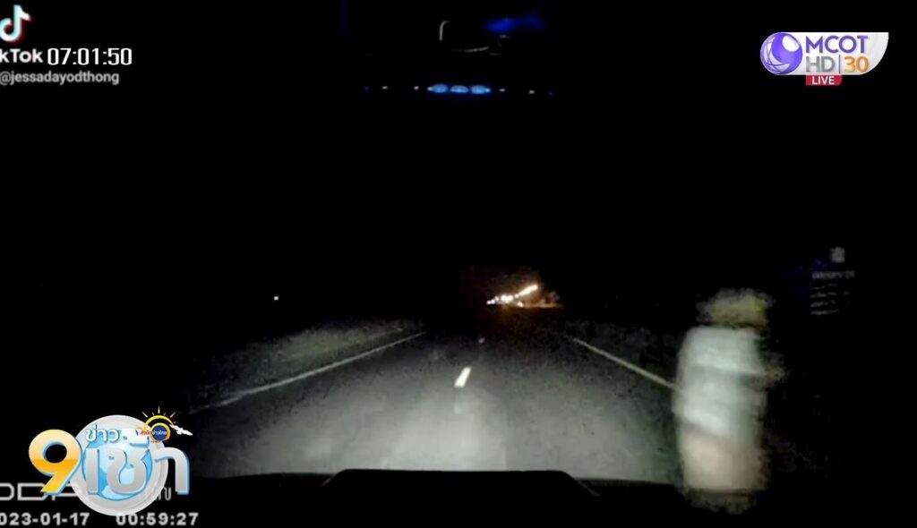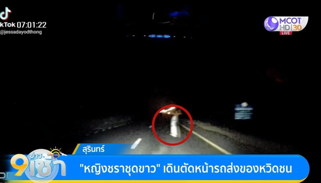 สุรินทร์ 19 ม.ค. – หนุ่มขับส่งของผ่านถนนสายปราสาท-ประโคนชัย เส้น 24 จ.สุรินทร์ เจอหญิงชราใส่ชุดขาว ถือไม้เท้า เดินตัดหน้ารถกะทันหันจนเกือบพลิกควํ่า เจ้าของรถยืนยันไม่ใช่คนแน่นอน