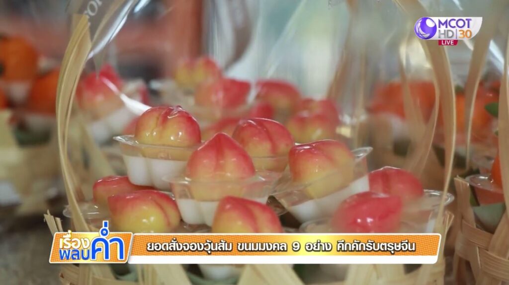สำหรับเมนูวุ้นกะทิลูกชุบมงคล ทั้งส้มมงคล เชอร์รีมงคล และลูกท้อมงคล จัดเป็นเซต เซตละ 99 บาท กระแสตอบรับเพิ่มหลายเท่า ตั้งแต่ช่วงปีใหม่ที่ผ่านมาออร์เดอร์สั่งยาวไปถึงเทศกาลตรุษจีน เพราะปัจจุบันลูกค้ายังนิยมสั่งเซตขนมมงคล 9 อย่าง ไปทำบุญถวายพระด้วย. – สำนักข่าวไทย