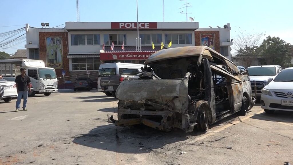 ส่วนรถตู้คันเกิดเหตุมีการเคลื่อนย้ายมาเก็บไว้ที่ สภ.สีคิ้ว เพื่อรอให้เจ้าหน้าที่และหน่วยงานที่เกี่ยวข้องมาตรวจสอบอย่างละเอียดอีกครั้ง แต่จากสภาพรถพบเสียหายทั้งคัน ภายในห้องโดยสารใต้เบาะนั่งมีถัง ก๊าซเอ็นจีวี 3 ถัง เชื่อว่าเป็นสาเหตุทำให้เกิดไฟลุกไหม้อย่างรวดเร็ว