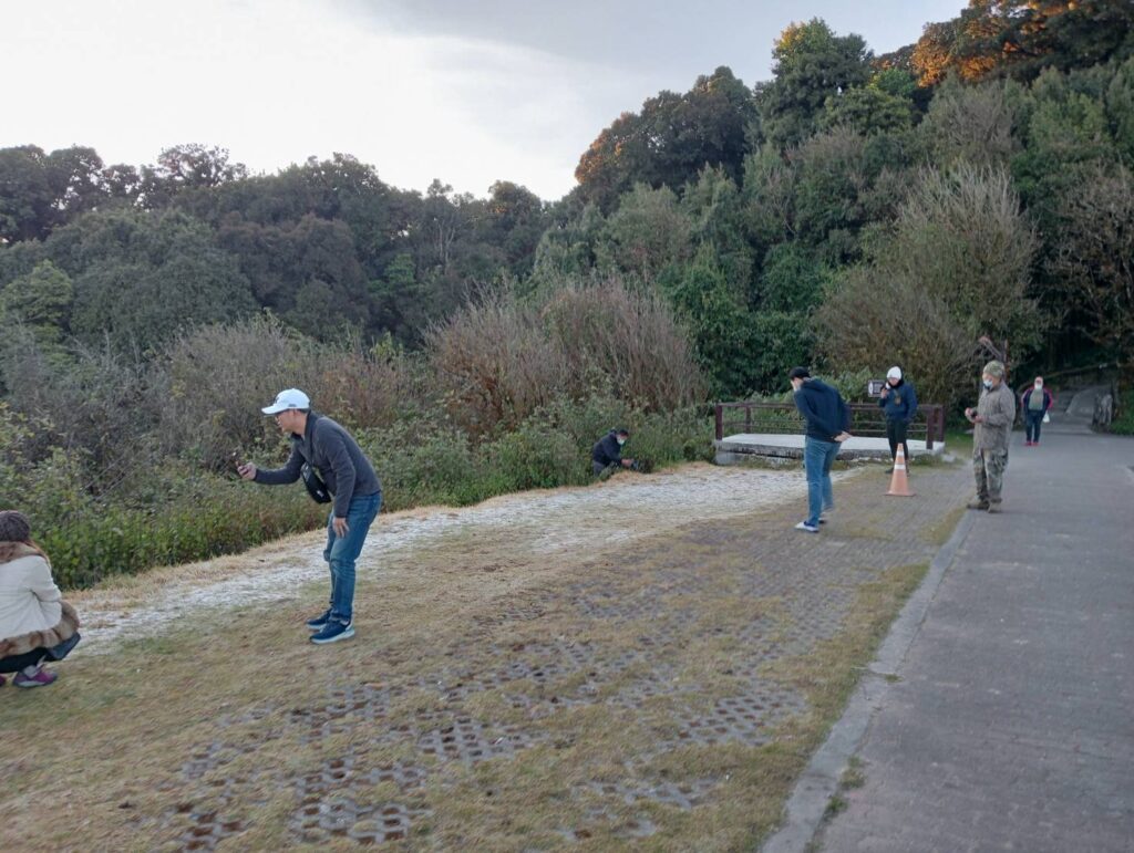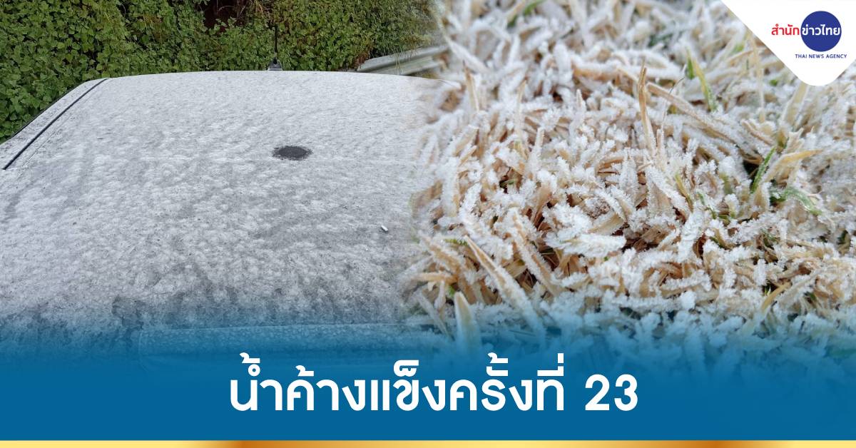 เช้าวันนี้ (25 ม.ค.66) ใบไม้และยอดหญ้าที่อยู่บนยอดดอยอนทนนท์ จ.เชียงใหม่ กลายเป็นเกล็ดน้ำแข็งขาวโพลนอีกครั้ง หลังอากาศยังหนาวจัดอุณหภูมิต่ำสุดบนยอดดอยยังเหลือ 4 องศาเซลเซียส นับเป็นการเกิดปรากฏการณ์น้ำค้างแข็ง หรือเหมยขาบ เป็นครั้งที่ 23 ของหน้าหนาวปีนี้ นับตั้งแต่เดือนพฤศจิกายนปีที่แล้ว ท่ามกลางความตื่นตาตื่นใจของนักท่องที่ยังเดินทางขึ้นไปท้าลมหนาวบนดอยอินทนนท์กันอย่างคึกคัก