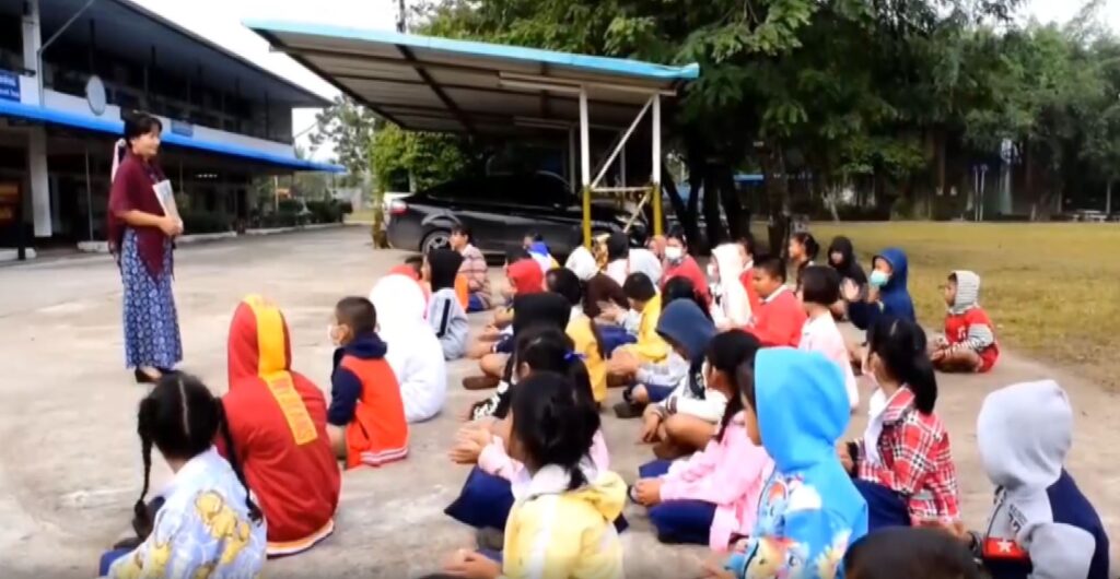 จังหวัดบุรีรัมย์ ครูโรงเรียนบ้านหนองสะแก อำเภอเฉลิมพระเกียรติ ได้พานักเรียนออกมานั่งเรียนกลางแดด เพื่อสร้างความอบอุ่นให้กับร่างกายสลับกับเรียนในห้อง ทั้งอนุญาตให้เด็กสวมใส่เสื้อกันหนาวมาเรียนได้ หลังสภาพอากาศหนาวเย็นฉับพลันอีกระลอก โดยอุณหภูมิวันนี้ลดเหลือ 14 องศา และคาดว่าจะหนาวเย็นอย่างต่อเนื่อง .-สำนักข่าวไทย