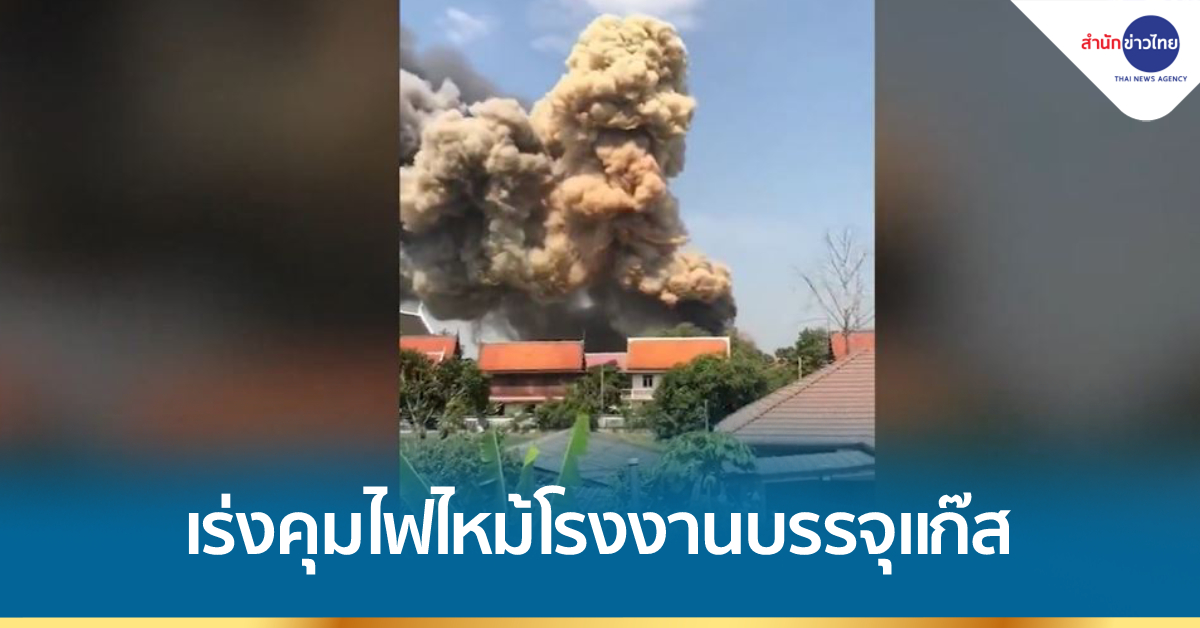 ปทุมธานี 25 ม.ค. – เพลิงไหม้โรงงานบรรจุแก๊ส ย่าน จ.ปทุมธานี มีเสียงระเบิดดังขึ้นเป็นระยะ เจ้าหน้าที่อยู่ระหว่างเร่งควบคุมเพลิง