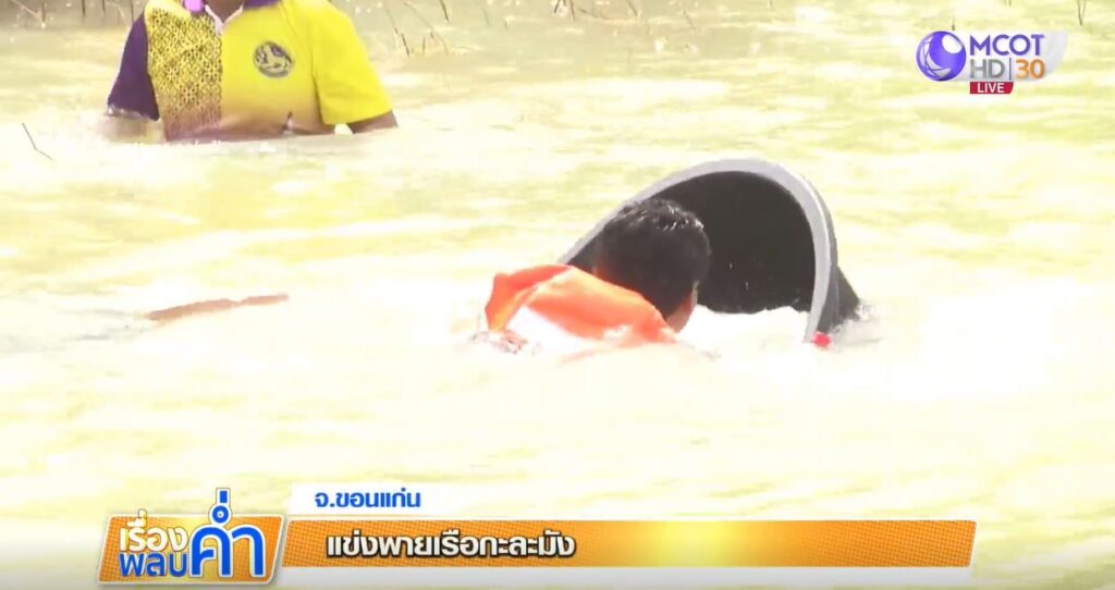 แต่นายอำเภอไม่ยอมเสียหน้าพยายามพายเรือให้ถึงเส้นชัย แต่ก็เคว้งหมุนไปหมุนมา จนชาวบ้านต้องกระโดดลงไปช่วย ใช้มือดันกะละมังจนเข้าถึงเส้นชัยในอันดับสุดท้าย ส่วนรอบนี้ผู้ชนะเป็นของอดีตปศุสัตว์อำเภอแวงน้อยที่นำเข้าเส้นชัยแบบม้วนเดียวจบ.-สำนักข่าวไทย