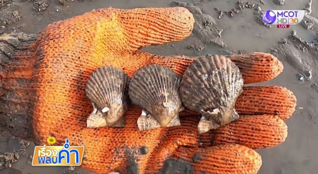 ส่วนหอยซองพลู เป็นหอยที่มีรสชาติหวาน เนื้อหอยเหมือนหอยเชลล์ แต่มีขนาดใหญ่กว่า นิยมนำมาทำเมนูผัดฉ่า ช่วงนี้ที่ตรังช่วงนี้มีฝนตกชุก ทำให้ชาวบ้านขาดรายได้จากการกรีดยางพารา จึงชวนกันลงทะเลไปหาหอยมาทำอาหาร ส่วนที่เหลือนำไปขายให้ร้านอาหาร. – สำนักข่าวไทย
