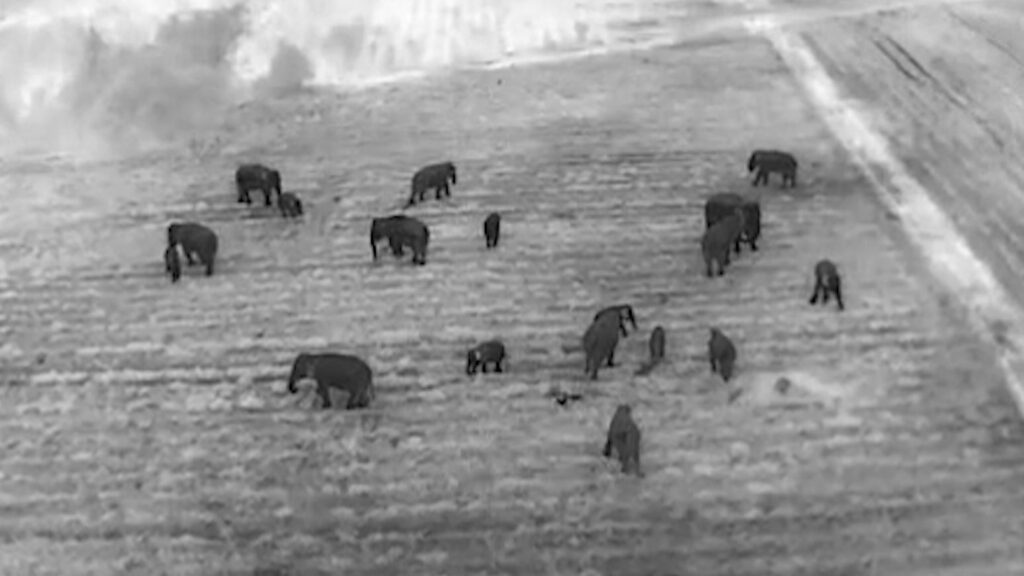 ผลักดันกลับป่าสำเร็จแล้ว สำหรับโขลงช้างป่านับร้อยตัวที่เดินออกจากป่าทุ่งกบินทร์ จ.ปราจีนบุรี มาพักที่ผืนป่า 500 ไร่ บ้านนางาม อำเภอสนามชัยเขต จังหวัดฉะเชิงเทรา โดย อบต.ท่ากระดาน เจ้าหน้าที่เฝ้าระวังช้างป่า และทหาร จัดชุดบินโดรนตรวจจับความร้อน ทำให้พบช้างป่าหากินอยู่บริเวณไร่มันและสวนปาล์ม จากนั้นวางแผนผลักดันช้างข้ามคูกันช้าง ซึ่งการผลักดันเป็นไปอย่างทุลักทุเล ต้องใช้เวลา 2 วัน 2 คืน จึงปฏิบัติการสำเร็จ