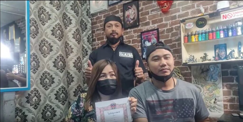 ส่วนนายวีระชาติ หรือช่างชาติ โพธิราช ช่างสัก เล่าว่า ตนเองตั้งแต่เป็นช่างสักมาเพิ่งที่จะได้สักรูปใบทะเบียนสมรสให้บอลเป็นคนแรก ใช้เวลาสักไป 8 ชั่วโมง เนื่องจากว่าเป็นงานที่ละเอียดมาก รู้สึกภูมิใจกับผลงานที่ออกมา เมื่อเห็นลูกค้ายิ้มและถูกใจ ซึ่งการสักจะอยู่ติดตัวไปตลอด ตอนแรกฝ่ายหญิงจะสักด้วย แต่เปลี่ยนใจให้ฝ่ายชายสักก่อน อีกสักพักจะสักตาม.-สำนักข่าวไทย