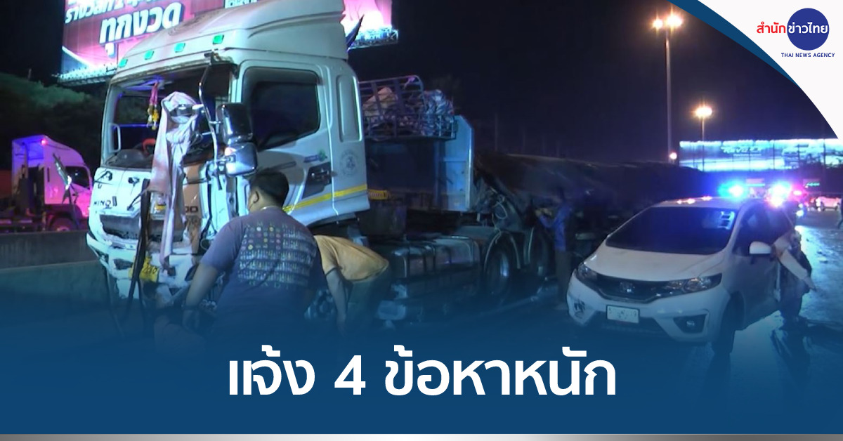 นครราชสีมา 30 ม.ค. – ตำรวจแจ้ง 4 ข้อหาหนักคนขับรถเทรลเลอร์ 22 ล้อ ชน 16 คัน บริเวณมอกลางดง พบปริมาณแอลกอฮอล์ 300 มิลลิกรัมเปอร์เซ็นต์ ถูกตัด 4 คะแนน ตามกฎหมายใหม่