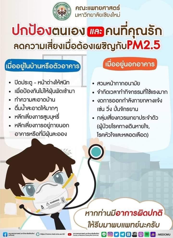 อย่างไรก็ตาม การเผายังเป็นอันดับต้นๆ ที่ทำให้เกิดฝุ่นพิษ จึงต้องเฝ้าระวังการจัดการเชื้อเพลิงจากการทำการเกษตร และทำให้เชื้อเพลิงลดลงให้ได้มากที่สุด ด้วยการส่งเสริมการแก้ปัญหาจุดเสี่ยงที่มีความร้อนสูง ลดการเผา และเพิ่มงบเรื่องของการแก้ปัญหาในชุมชน รวมถึงยังมีแผนการควบคุมมลพิษในเขตเมือง อย่างการควบคุมควันดำ นอกจากนี้สำนักงานสาธารณสุขจังหวัดเชียงใหม่ ยังแนะแนวทางจัดการห้องปลอดฝุ่นเพื่อช่วยลดผลกระทบจากฝุ่นพิษ คือการหาห้องที่ปิดสนิทหรือมีหน้าต่างน้อยที่สุด ไม่ใกล้แหล่งฝุ่น สามารถป้องกันฝุ่นจากภายนอกได้ และลดการเกิดฝุ่นภายใน รวมถึงการกำจัดฝุ่นในห้อง ด้วยการนำผ้าเปียกหมาดเช็ดฝุ่นประจำ ตลอดจนใช้เครื่องฟอกอากาศช่วย. -สำนักข่าวไทย