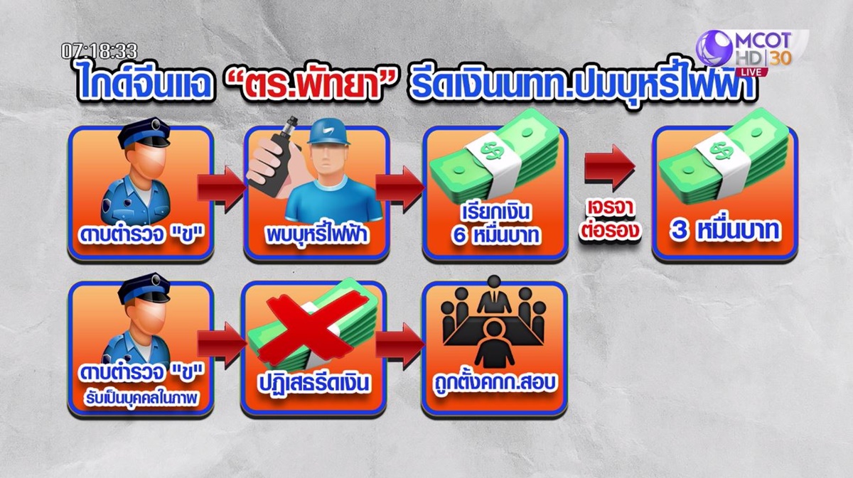 ชลบุรี 1 ก.พ. – ผบก.ภ.จว.ชลบุรี สั่งย้ายด่วน “ดาบตำรวจ” สภ.เมืองพัทยา จับบุหรี่ไฟฟ้า รีดไถเงินนักท่องเที่ยวจีน 6 หมื่นบาท พร้อมสั่งตั้งกรรมการสอบข้อเท็จจริง ด้านเจ้าตัวยอมรับเป็นคนในภาพ แต่ปฏิเสธเรียกเงิน