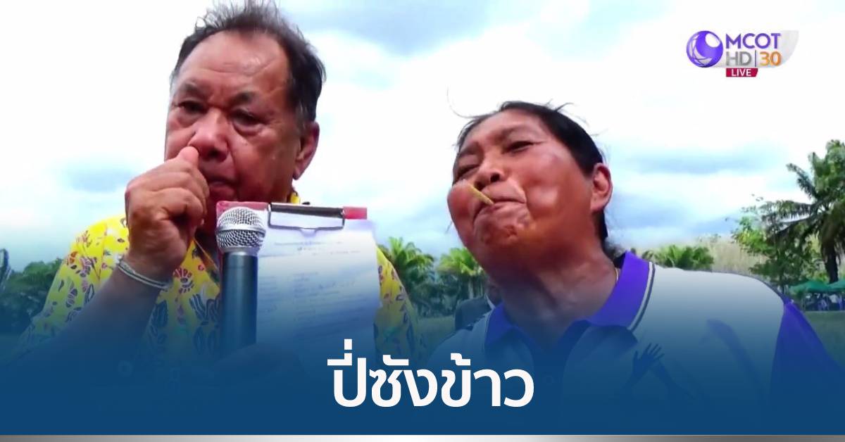 หลังการเก็บเกี่ยว ทำปี่จากตอซังข้าวหรือฟางข้าว เป่าเป็นเสียงดนตรี และเสียงสัตว์ต่าง ๆ เป็นการย้อนรำลึกถึงภาพของเล่นในอดีตที่ได้จากฟางข้าวเหลือใช้ สร้างความสนุกสนานในนาข้าว ผ่อนคลายความเครียด และสร้างรอยยิ้มเป็นกำลังใจให้กันและกัน เด็ก ๆ ชอบมาก แต่เป่าเท่าไหร่ก็ได้แต่เป็นเสียงดังแบบยาวๆ ไม่มีจังหวะ ทำนอง เช่นเดียวกับชาวบ้านหลายคน ก็เป่าแค่ให้เกิดเสียงดัง แต่ไม่เป็นเพลง ทำให้ครูยิ่ง หรือนายยิ่ง ภักดีสัตยากุล อายุ 75 ปี ทำหน้าที่พิธีกร อดใจไม่ไหว นำปี่ซังข้าวมาเป่าโชว์ ขยับมือหมุนไปมา เกิดเสียงดังคล้ายเสียงเด็กร้อง เสียงวัวและเสียงนก สร้างเสียงหัวเราะให้กับชาวบ้านได้เป็นอย่างมาก หลายคนพยายามเลียนแบบ แต่ทำไม่ได้