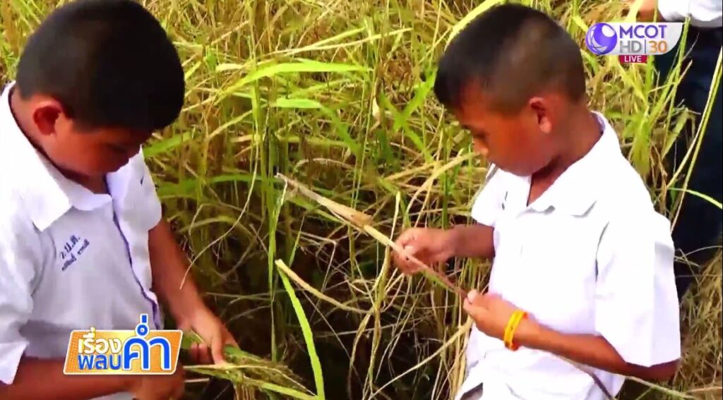 ตรัง 1 ก.พ. – ชาวบ้านและนักเรียนในตำบลบางดี อ.ห้วยยอด จ.ตรัง ร่วมกันลงแขกเกี่ยวข้าว และทำปี่ซังข้าว นำมาเป่าให้เกิดเสียงเพลง รำลึกถึงของเล่นโบราณในนาข้าว