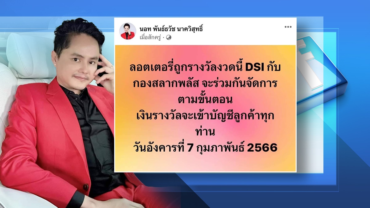 ขณะที่ช่วงเย็นวานนี้ (1 ก.พ.66) “นอท” เจ้าของกองสลากพลัส ได้ไลฟ์ผ่านเพจเฟซบุ๊ก หลังได้ข้อสรุปผลการหารือกับดีเอสไอว่า การขึ้นเงินรางวัลสลากกินแบ่งรัฐบาล งวดวันที่ 1 ก.พ.66 ทางกองสลากพลัสได้ตั้งตัวแทนขึ้นมาแทน “นอท” แล้วจะนำลอตเตอรี่ที่ถูกรางวัลไปขึ้นรางวัลที่สำนักงานสลากกินแบ่งรัฐบาล จากนั้นจะนำเช็คไปขึ้นเงิน แล้วทยอยโอนเงินให้กับผู้ถูกสลากฯ โดยทุกขั้นตอนจะมีดีเอสไอร่วมด้วย โดยหลังประกาศรางวัล ทางกองสลากพลัสและดีเอสไอได้ทำการคัดแยกสลากฯ ที่ถูกรางวัลทันที คาดว่าใช้เวลา 3 วัน โดยจะไปขึ้นเงินรางวัลในวันจันทร์ที่ 6 ก.พ. และจะโอนเงินเข้าบัญชีลูกค้าที่ถูกรางวัลไม่เกินเย็นวันอังคารที่ 7 ก.พ.นี้