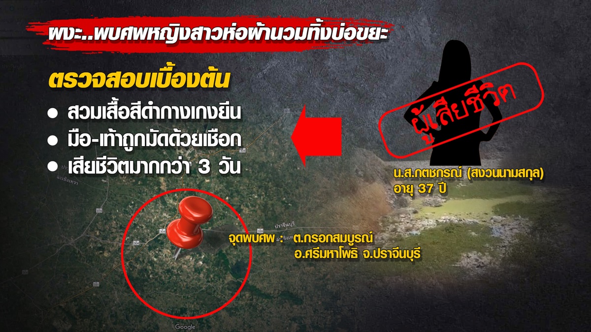 ปราจีนบุรี 3 ก.พ. – ตำรวจเร่งแกะรอยไล่ล่าหนุ่มคนสนิทสังหารโหดหญิงวัย 37 ปี ห่อศพด้วยผ้านวมก่อนโยนทิ้งบ่อขยะ คาดปมหึงหวง กลัวหญิงสาวตีจาก