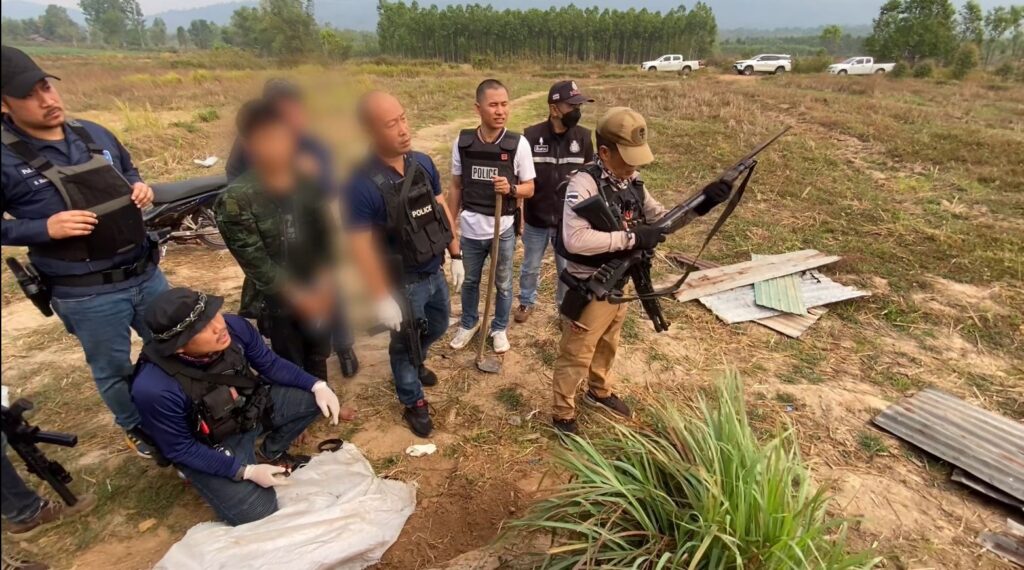 สระแก้ว 3 ก.พ. – ตำรวจภูธรภาค 2 กวาดล้างกลุ่มยาเสพติด โชว์ผลงานบุกรวบ “แจ๊ก ท่ากระบาก” ขณะวิ่งหนีลงน้ำ ตัวการใหญ่รับยาเสพติดมาขายให้วัยรุ่นในพื้นที่ ชอบยิงปืนขู่ชาวบ้าน พร้อมวางแผนจับพ่อซึ่งเป็นตัวการใหญ่ได้เช่นกัน
