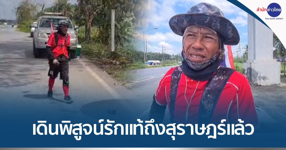 สุราษฎร์ธานี 5 ก.พ. – ถึงสุราษฎร์ธานีแล้ว! ชายวัย 52 ปี เดินเท้าข้ามจังหวัด จากนครนายกไปขอสาวแต่งงาน ที่ จ.สตูล เพื่อพิสูจน์รักแท้ หลังฝ่ายหญิงบอกถ้าจริงใจให้เดินหรือวิ่งมาหา