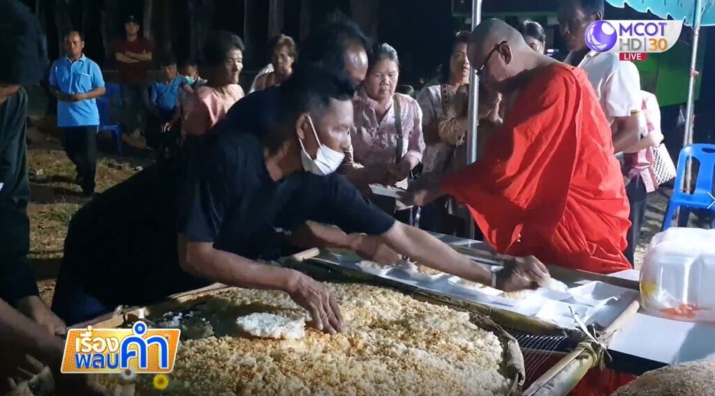 ทางวัดจัดให้มีการทำข้าวจี่ขนาดใหญ่เส้นผ่าศูนย์กลางกว่า 1.5 เมตร เพื่อนำไปแจกจ่ายให้กับผู้ที่เข้าร่วมพิธี