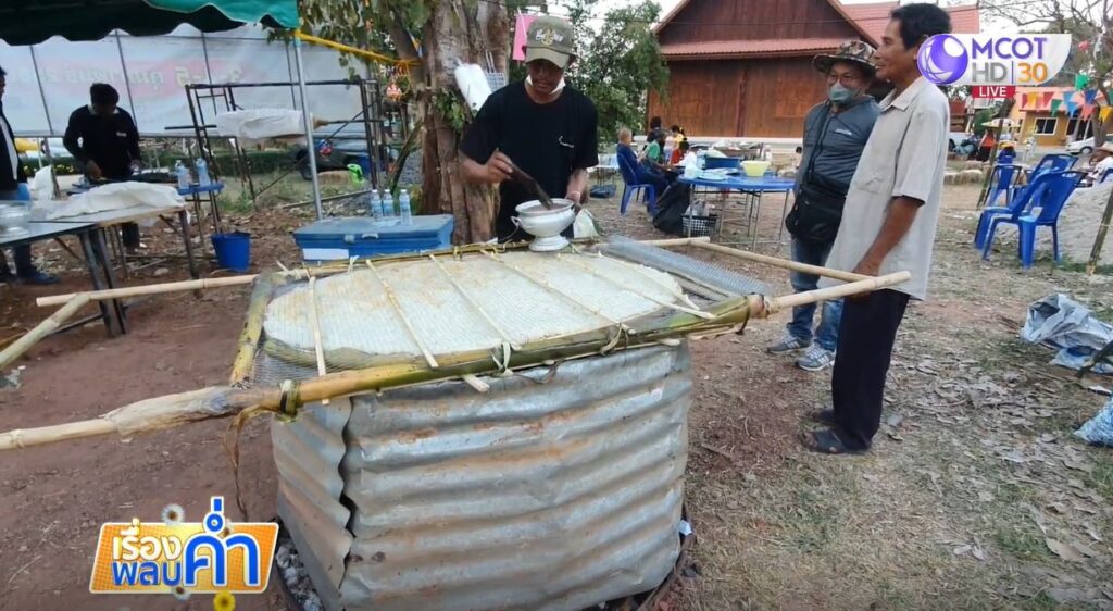 ภูมิภาค 6 ก.พ. – ชาวบ้านโคราชร่วมทำข้าวจี่ขนาดยักษ์ 1.5 เมตร ข้าวมงคลแจกให้ผู้เข้าร่วมประเพณีบุญคูณลาน หรือกุ้มข้าวใหญ่ รับประทานเสริมโชคบารมี ณ วัดบ้านโคกสว่าง อ.ห้วยแถลง จ.นครราชสีมา