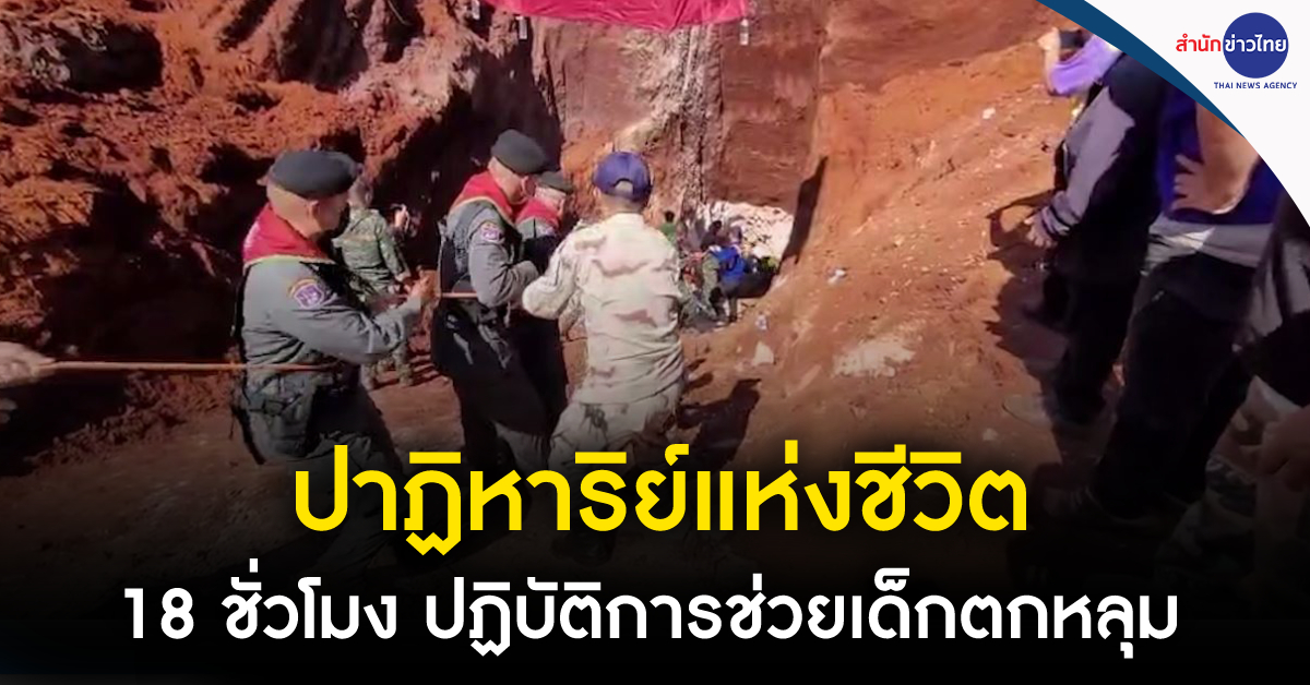 ตาก 7 ก.พ. – เรียกว่าบีบหัวใจกันมาตลอดทั้งคืน สำหรับปฏิบัติการช่วยชีวิตเด็กหญิงวัย 1 ขวบ 7 เดือน ที่พลัดตกลงไปในหลุมเจาะน้ำบาดาลลึก 15 เมตร ที่ อ.พบพระ จ.ตาก หลังจากทีมกู้ภัยและเจ้าหน้าที่นับร้อยนายทุ่มเทความพยายามกันมาตลอด 18 ชั่วโมง จนสามารถช่วยเหลือน้องออกมาได้อย่างปลอดภัย กลายเป็นปาฏิหาริย์แห่งชีวิต ท่ามกลางความดีใจของพ่อแม่ ชาวบ้าน เจ้าหน้าที่ รวมถึงผู้คนที่ติดตามข่าวนี้. – สำนักข่าวไทย