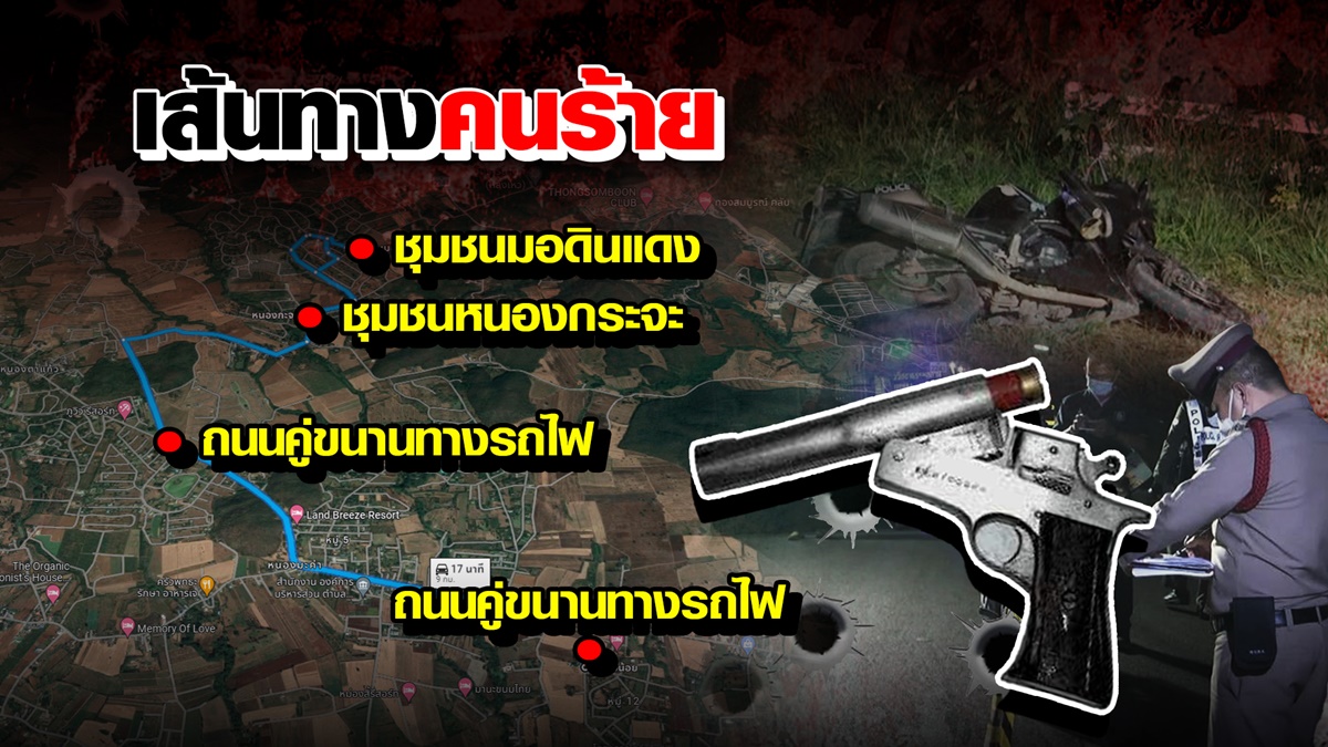 ขณะที่ชาวบ้านที่เห็นเหตุการณ์ บอกว่า คนร้ายสวมเสื้อสีเทาแบบมีฮู้ด ขี่รถจักรยานยนต์มุ่งหน้าไปทางหมู่บ้านหนองมะค่า มีรถสายตรวจขี่ตามหลัง จากนั้นได้ยินเสียงปืนดังขึ้น เมื่อขี่รถตามไปก็พบตำรวจถูกยิงแล้ว. – สำนักข่าวไทย