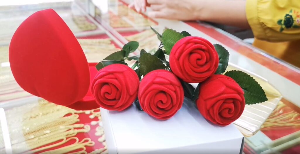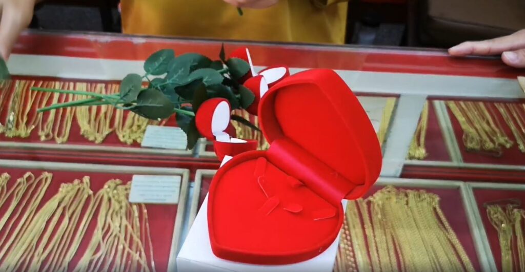 ตรัง 13 ก.พ. – วาเลนไทน์ปีนี้ ร้านทองปรับกลยุทธ์ทำกล่องดอกกุหลาบและกล่องหัวใจใส่ทอง เอาใจคู่รัก ตลอดเดือนกุมภาพันธ์ มอบเป็นของขวัญ แทนดอกกุหลาบจริง ถูกใจทั้งผู้ให้และผู้รับ