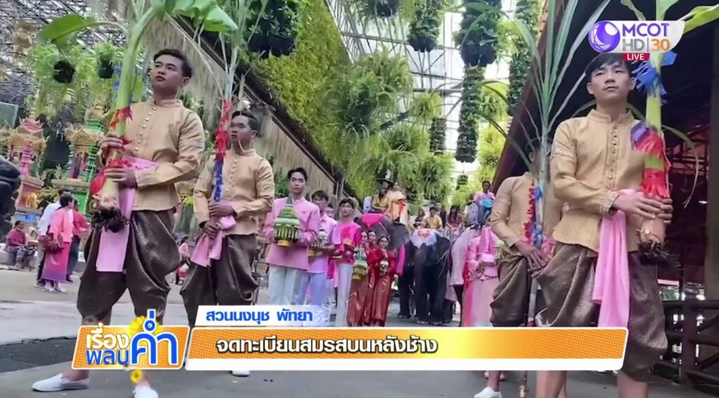 ส่วนบรรยากาศที่ สวนนงนุชพัทยา จัดงานจดทะเบียนสมรสบนหลังช้างต่อเนื่องเป็นปีที่ 13 เช่นกัน รับวันแห่งความรัก 14 กุมภาวันวาเลนไทน์ โดยจัดขึ้นบริเวณสวนลอยฟ้าซึ่งเป็นสวนที่แปลกและใหม่ล่าสุดหนึ่งเดียวในโลก สวนนงนุชพัทยา ได้จัดขบวนแห่ขันหมากขึ้น อย่างยิ่งใหญ่ โดยนำคู่สมรส 9 คู่แรก นั่งบนหลังช้างเพื่อร่วมขบวนแห่ขันหมาก สร้างความตื่นตา ตื่นใจให้กับคู่บ่าวสาวที่มาร่วมงาน และในกิจกรรมจดทะเบียนสมรสวันนี้ ทุกคู่ที่ร่วมกิจกรรม จะได้ขึ้นบนหลังช้างเพื่อรับทะเบียนสมรสทุกคู่ พร้อมกับรับของที่ระลึกเป็นไม้มงคล จากสวนนงนุชพัทยาทุกคู่ การจัดกิจกรรมจดทะเบียนบนหลังช้างทางสวนนงนุชพัทยา ได้จัดกิจกรรมอย่างต่อเนื่องตั้งแต่ปี 2553 จนถึงปัจจุบันรวมระยะเวลา 13 ปี สำหรับวันที่ 14 กุมภาพันธ์ เป็นวันเซนต์วาเลนไทน์ (St. Valentines Day) หรือวันระลึกถึงนักบุญวาเลนไทน์ ชาวโรมันผู้เปี่ยมไปด้วยความรัก ความเมตตา และปรารถนาดีต่อเพื่อนมนุษย์อย่างแท้จริง จึงเป็นต้นกำเนิดของวันวาเลนไทน์ ที่หนุ่มสาวใช้เป็นวันบอกรักหรือสานสัมพันธ์ให้แนบแน่นยิ่งขึ้น