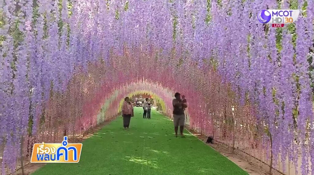สำหรับซุ้มดอกวิสทีเรียนี้เจ้าอาวาสก็ได้ไอเดียจากสวนดอกวิสทีเรียของญี่ปุ่น และสั่งดอกไม้ปลอมมาตกแต่งอย่างสวยงาม เริ่มทำมาตั้งแต่ 20 มกราคมที่ผ่านมา ตอนนี้ทำได้ประมาณ 70% คาดว่าจะเสร็จสมบูรณ์ภายในสิ้นเดือนนี้ ถ้าเสร็จจุดนี้แล้วก็จะทำเพิ่มอีกซุ้มบริเวณด้านทิศเหนือโบสถ์ โดยจะทำในรูปแบบสวนอิตาลี เพื่อให้แตกต่างออกไป ส่วนปัจจัยที่ใช้ในการซื้อดอกไม้วัสดุทุกอย่าง เจ้าอาวาสใช้งบส่วนตัวทั้งหมด พร้อมขอเชิญชวนญาติโยม นักท่องเที่ยว แวะเวียนไปที่วัดโนนคูณน้อย. -สำนักข่าวไทย
