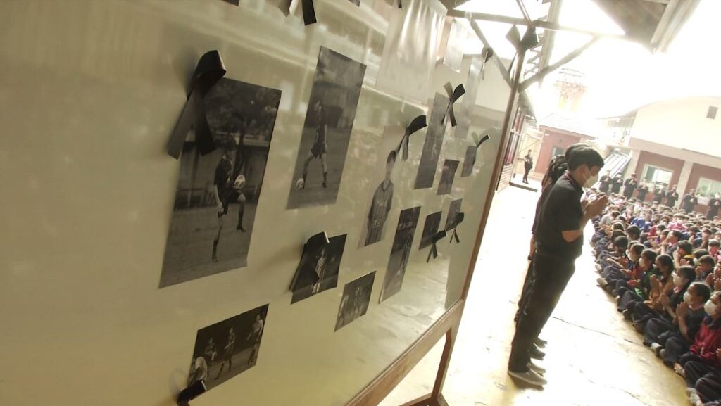 เชียงใหม่ 16 ก.พ. – โรงเรียนวชิราลัย อ.สารภี จ.เชียงใหม่ จัดงานไว้อาลัยให้กับนายดวงเพชร พรหมเทพ หรือ น้องดอม 1ใน 13 สมาชิกทีมหมูป่าอะคาเดมี่ นักเรียนชั้น ม.5 ที่ได้ทุนไปเรียนฟุตบอลที่อังกฤษ และเสียชีวิตเมื่อวันที่ 14 กุมภาพันธ์ เพื่อส่งดวงวิญญาณไปสู่สุคติ