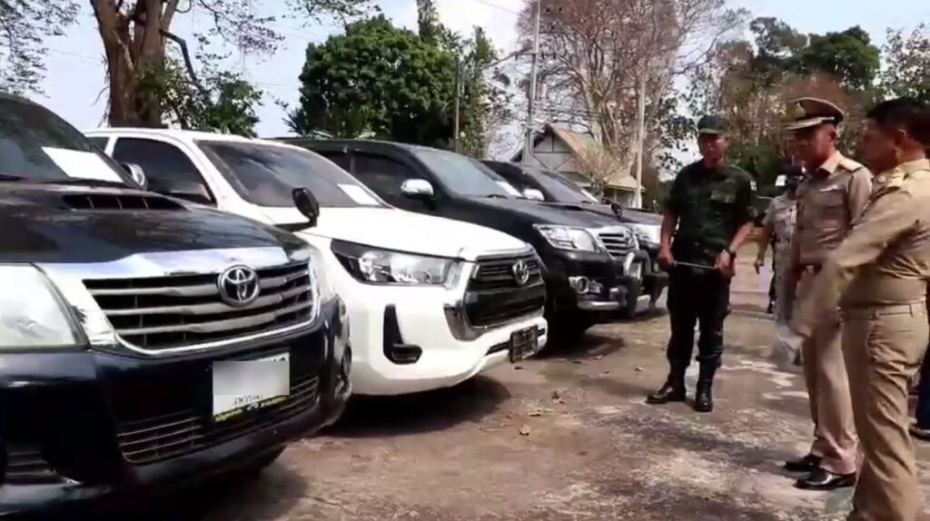 ในขณะเดียวกัน เวลา 23.30 น. ที่ท่าทราย บ.ท่าอินทร์แปลง ต.โคกก่อง อ.เมืองบึงกาฬ ชุดปฏิบัติการพิเศษ นรข. และชุดปฏิบัติการพิเศษ ศูนย์อำนวยป้องกันและปราบปรามยาเสพติดกองทัพเรือ ร่วมกับสถานีเรือบึงกาฬ ได้ตรวจยึดรถยนต์กระบะ 7 คัน ซึ่งกำลังลักลอบนำออกราชอาณาจักรโดยผิดกฎหมาย จากการข่าวทราบว่ากลุ่มขบวนการทั้งสองมีความเชื่อมโยงระหว่างกันคาดเป็นกลุ่มขบวนการลักลอบนำรถยนต์ข้ามโขงเพื่อแลกกับยาเสพติดคดีดังกล่าว ส่งพนักงาน สภ.บึงกาฬ ดำเนินการต่อไป .-สำนักข่าวไทย