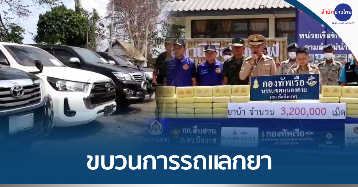 บึงกาฬ 19 ก.พ. – ผบ.นรข. แถลงข่าวตรวจยึดยาบ้า 3.2 ล้านเม็ด ร่วมทลายขบวนการ “รถแลกยา” ข้ามแม่น้ำโขง
