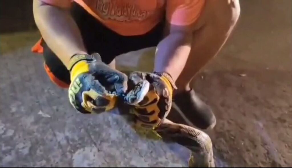 อาสาสมัครกู้ภัยฯ ได้รับแจ้งจากชาวบ้านให้ไปช่วยจับงูเหลือมขนาดใหญ่ภายในหมู่บ้าน หมู่ 16 ต.สลักได อ.เมือง จ.สุรินทร์ พอถึงที่เกิดเหตุ ซึ่งเป็นพื้นที่ว่างรกร้าง ซึ่งเป็นที่สาธารณประโยชน์ของหมู่บ้าน แต่มีหญ้าขึ้นสูง อาสาสมัครกู้ภัยฯ พร้อมอุปกรณ์จับงู เข้าค้นหางูเหลือม ใช้เวลาค้นหาได้ประมาณ 10 นาที ก็พบงูเหลือมขนาดใหญ่ความยาวเกือบ 3 เมตร นอนขดตัวอยู่ในพงหญ้า จึงช่วยกันจับงูเหลือมยักษ์เอาไว้ได้