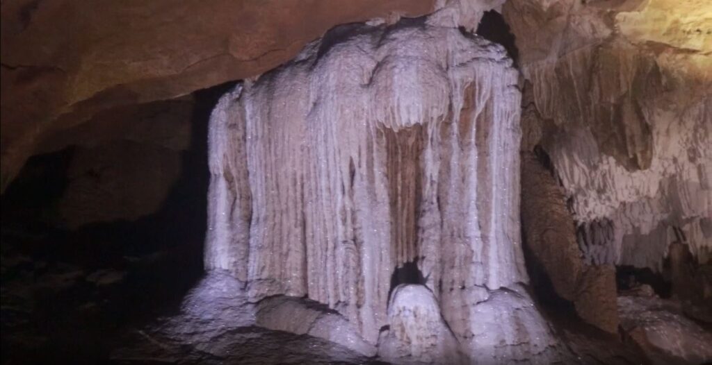 นายสุกิจ อยู่เจริญ หัวหน้ากลุ่มนายพราน และไกด์ชุมชนบ้านมุง เล่าว่า ในช่วงนี้ทางอุทยานแห่งชาติทุ่งแสลงหลวงเปิดให้นักท่องเที่ยวเดินเที่ยวถ้ำเดือนถ้ำดาวได้แล้ว หลังจากน้ำในถ้ำได้ลดลง นักท่องเที่ยวสามารถลอยคอผ่านตามเชือก เข้าไปในถ้ำชมความงามหินงอกหินย้อย โดยเฉพาะที่ UNSEEN ในช่วงกำลังเข้าสู่ฤดูร้อนแบบนี้ นักท่องเที่ยวต้องลองมามุดตัวลงไปเป็นทางน้ำใต้ดินจากอีกฟากหนึ่งของถ้ำ แล้วผ่านกระบวนการกัดเซาะมานานนับล้านๆ ปี จึงเกิดเป็นถ้ำน้ำลอดขึ้น โดยมีทางน้ำมาทะลุออกอีกด้านหนึ่งให้เห็นคือด้านปากถ้ำที่บ้านมุงนี้ ด้วยระยะทางความยาวของตัวถ้ำราว 1.4 กิโลเมตร บริเวณโดยรอบของผนังถ้ำจะปรากฏหินงอกหินย้อยสีขาว ที่มีแร่ซิลิกา เป็นเกล็ดเหมือนประกายเพชรระยิบระยับ สะท้อนกับแสงไฟ สวยงามเป็นอย่างยิ่ง