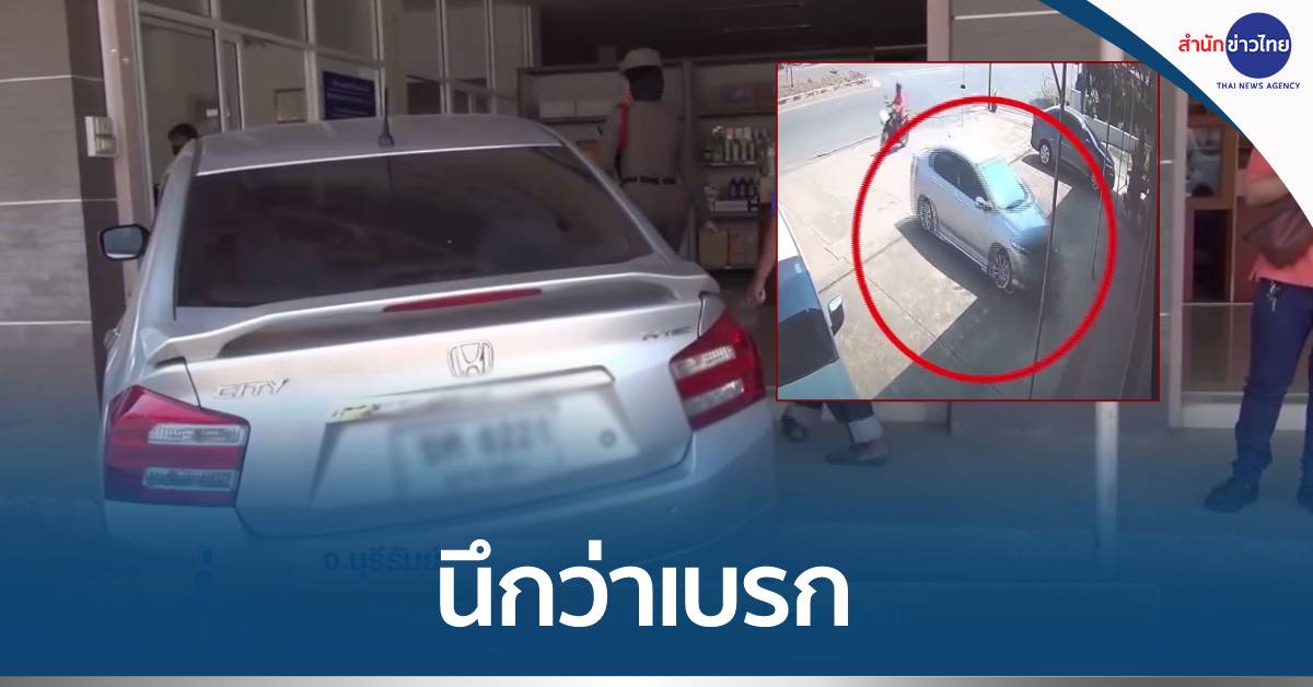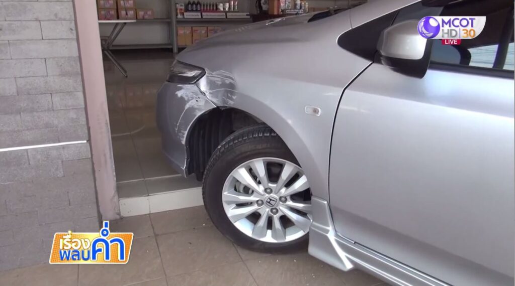 น.ส.ชมถวิล คนขับรถเก๋งคันเกิดเหตุ เล่าด้วยอาการตื่นตกใจว่า ขับมาจาก ต.สวายจีก อ.เมือง จ.บุรีรัมย์ เพื่อจะมาซื้อเมล็ดพันธุ์ข้าวที่ศูนย์กระจายสินค้าดังกล่าว แต่ช่วงที่ยูเทิร์นมาจะเลี้ยวเข้าจอดหน้าร้านเกิดตกใจ เหยียบคันเร่งอย่างแรง คิดว่าเหยียบเบรก จึงพุ่งเข้าร้าน ตอนนั้นทำอะไรไม่ถูก จึงรีบดับรถ ซึ่งรถคันดังกล่าวเป็นรถพี่สาว แต่ก็ขับบ่อยไม่ใช่เพิ่งขับ แต่ครั้งนี้ยอมรับว่าเป็นอุบัติเหตุ ด้วยความตกใจ จึงเหยียบคันเร่งผิด นึกว่าเบรก