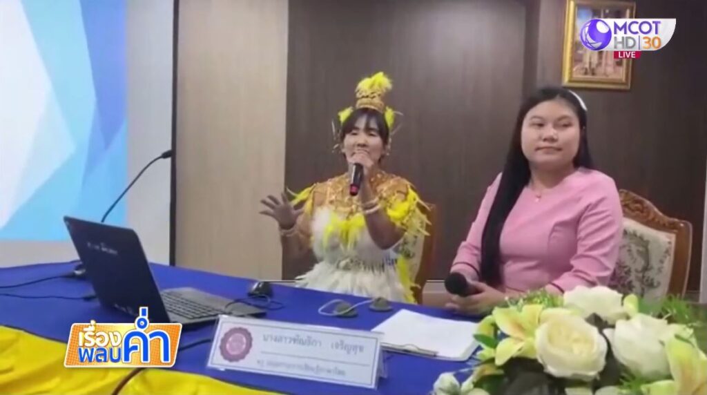 ฉะเชิงเทรา 23 ก.พ. – ครูภาษาไทย แปลงโฉมเป็นนางมโนราห์ สวมบทบาทวิทยากรให้ความรู้แก่คณะครู นักศึกษา เจ้าตัวตั้งใจสอดแทรกภาษาไทยทัศนคติที่ถูกต้องและค่านิยมที่ดีในการอนุรักษ์ความเป็นไทย