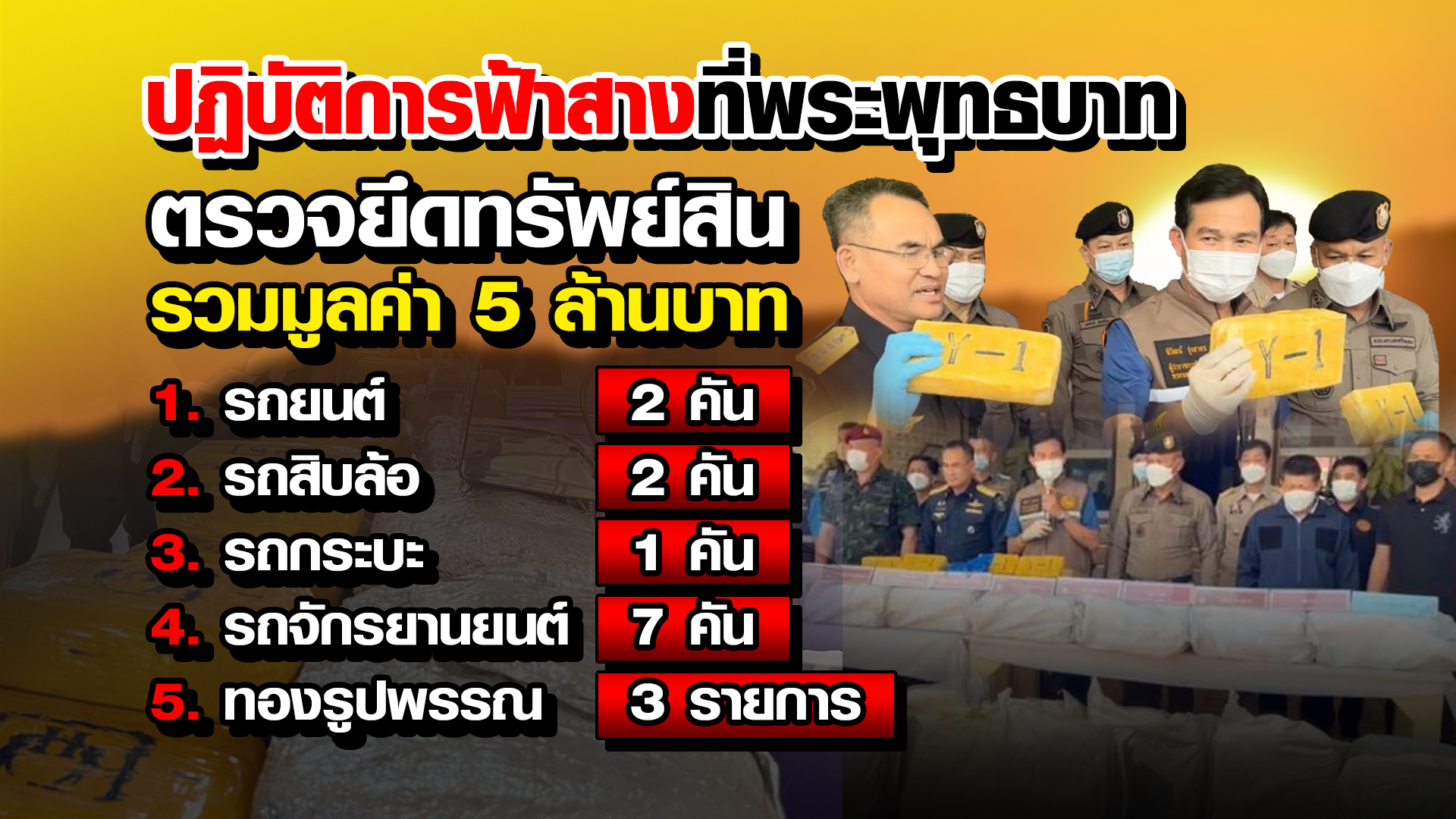 สระบุรี 23 ก.พ. – ตำรวจสระบุรี ขยายผลจากการจับยาบ้า 3 ล้านเม็ด สู่ปฏิบัติการฟ้าสางที่พระพุทธบาท ยึดของกลางมูลค่ารวมกว่า 5 ล้านบาท